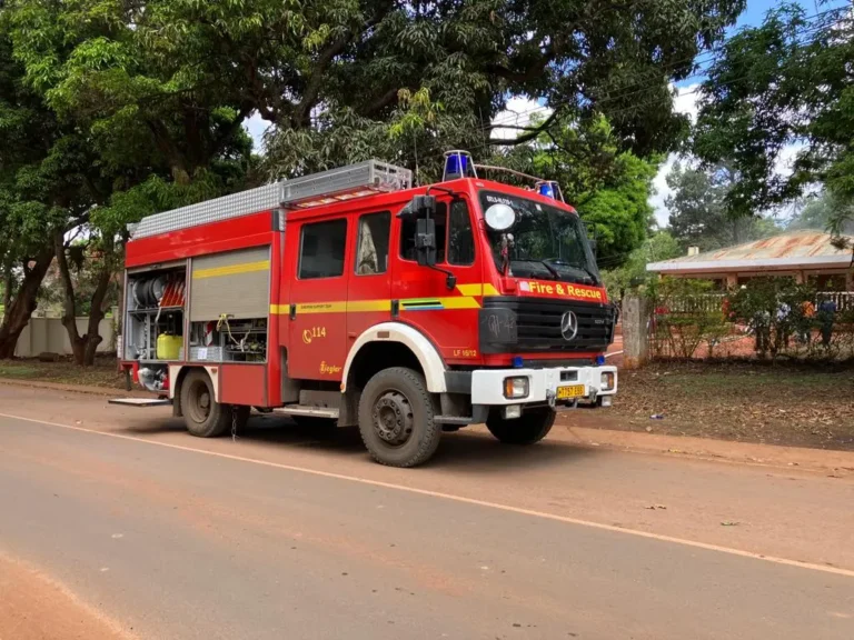 Die Feuerwehr aus Nakuru fährt nach einer halben Stunde los wenn der Truck ausreichend Diesel hat. Die Fahrt zu dir dauert eine Stunde.